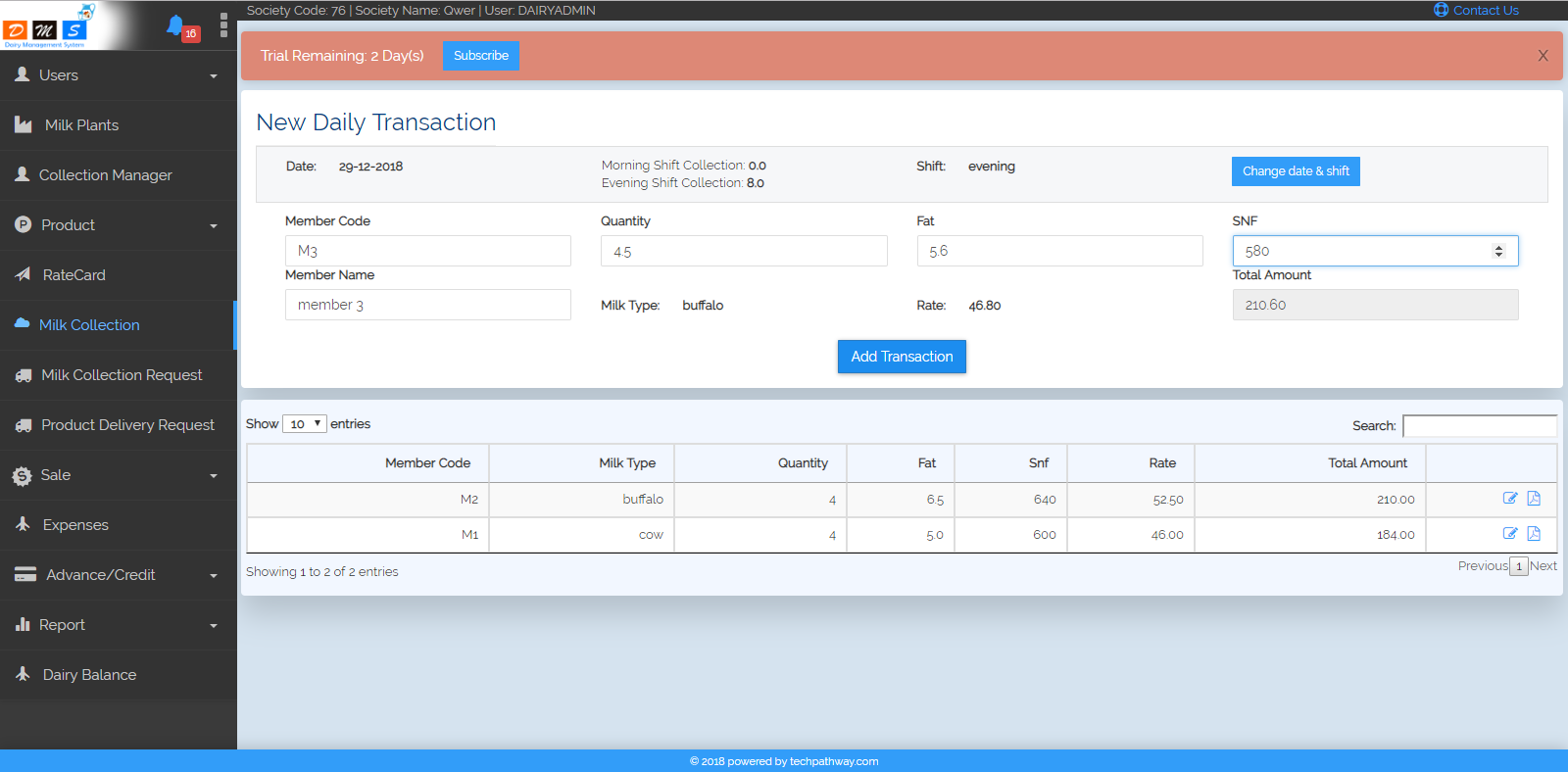 Daily Milk Collection