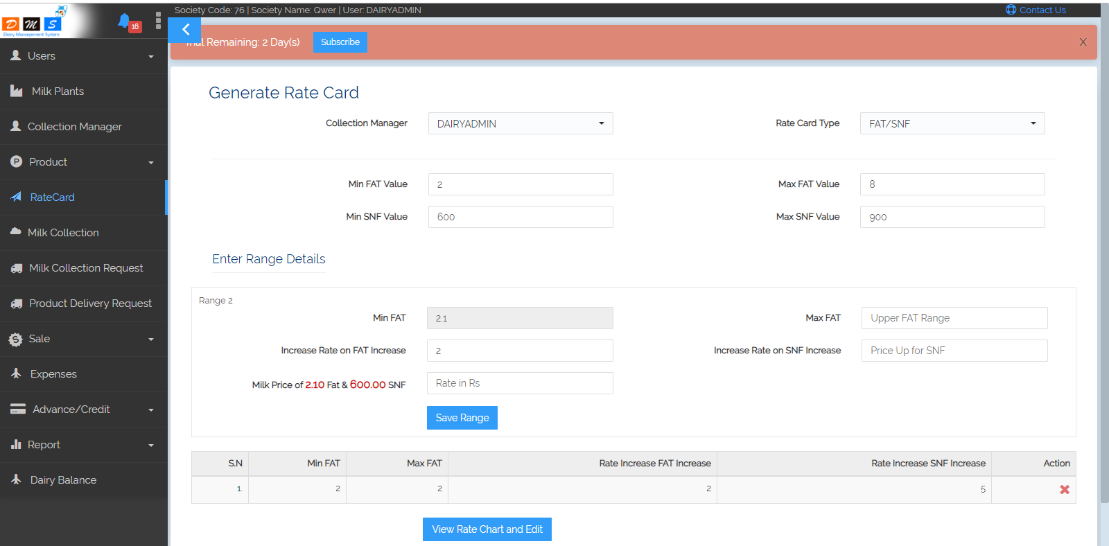 Ratecard Management